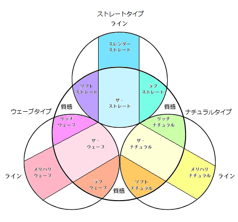 ⇒「ストレート」(筋肉)・「ウェーブ」(水分と脂肪)・「ナチュラル」(骨)