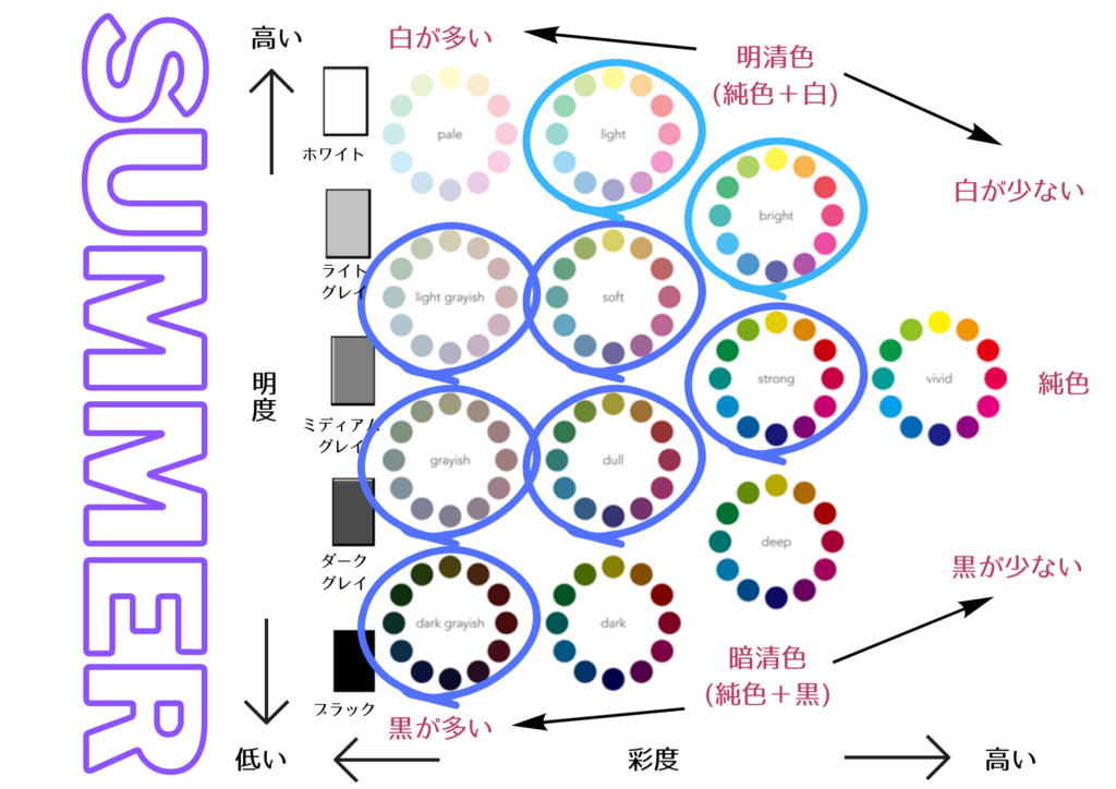 サマーの中でも特に濁色(くすみの強い:グレイッシュな色)が得意。